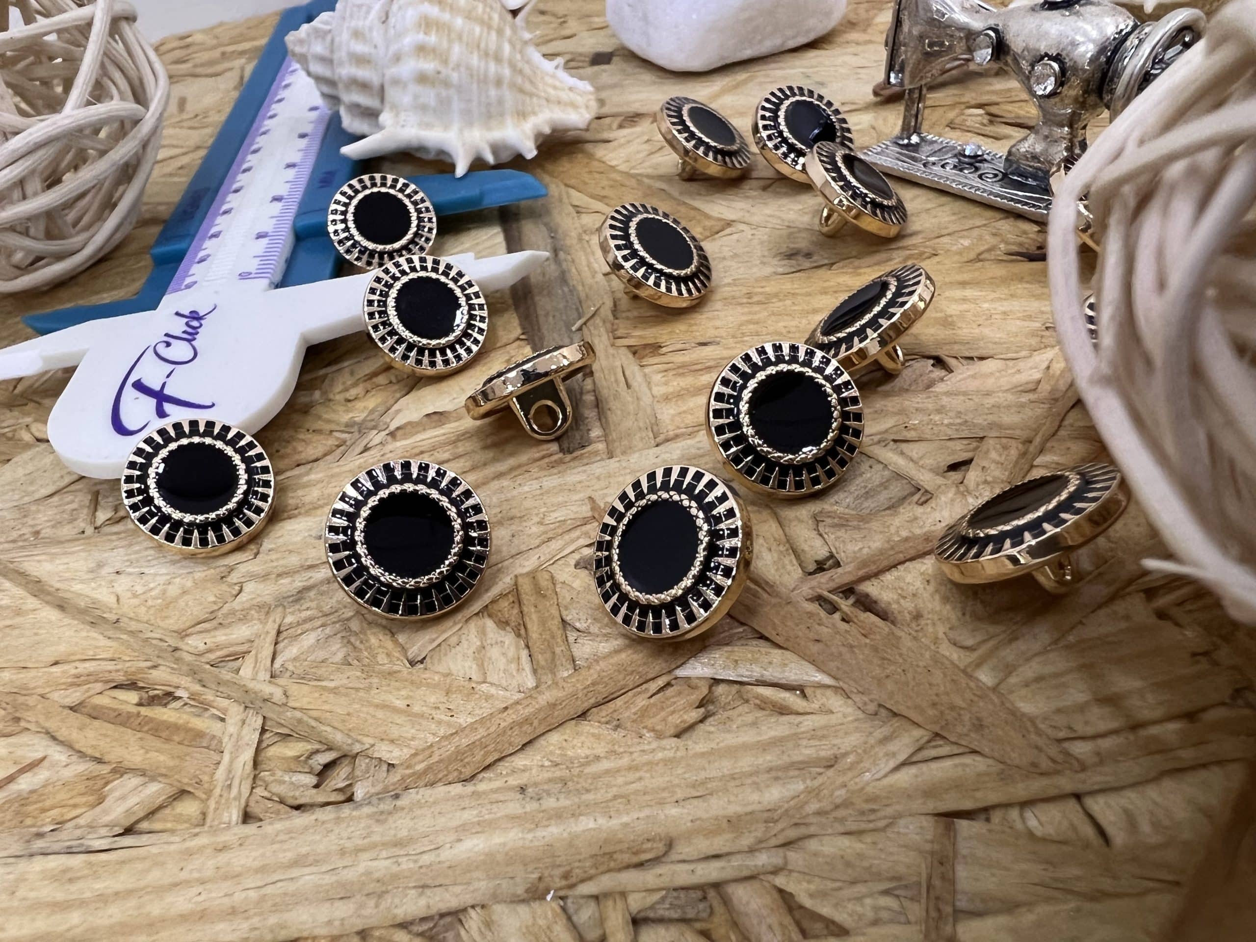 Luxury Black Rim Gold Metal Button 15mm