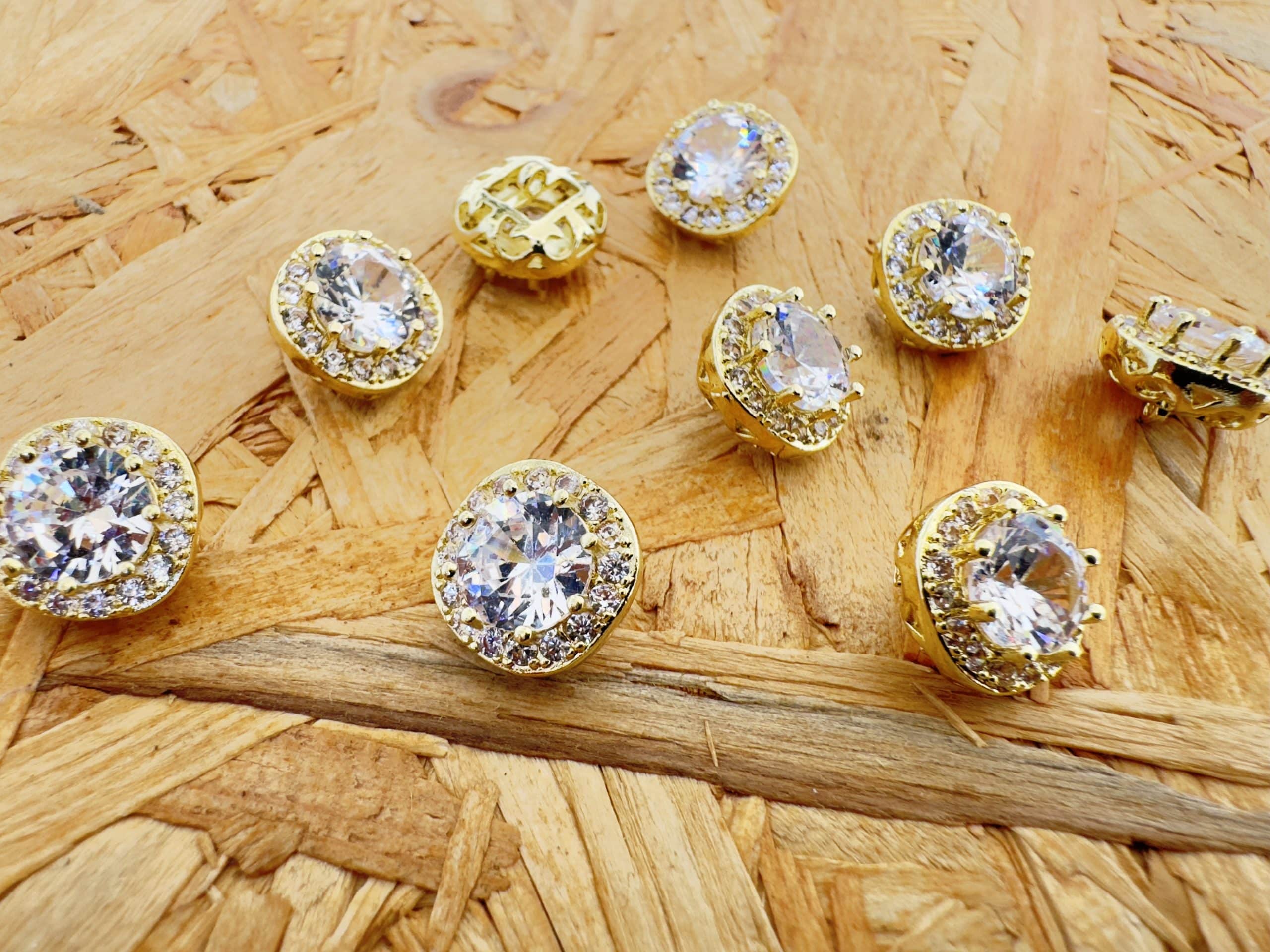 Luxury Diamond Zircon Gold Swarovski Metal Button 12mm