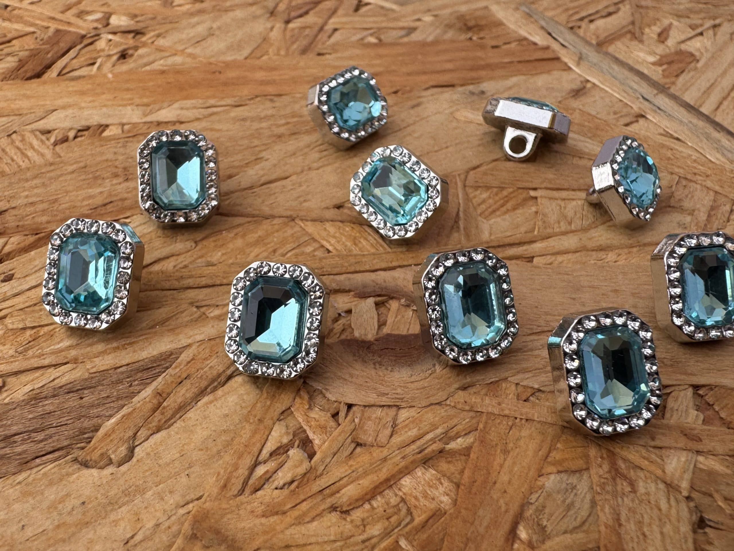 Luxury Sea Blue Carats Swarovski Metal Button 10mm