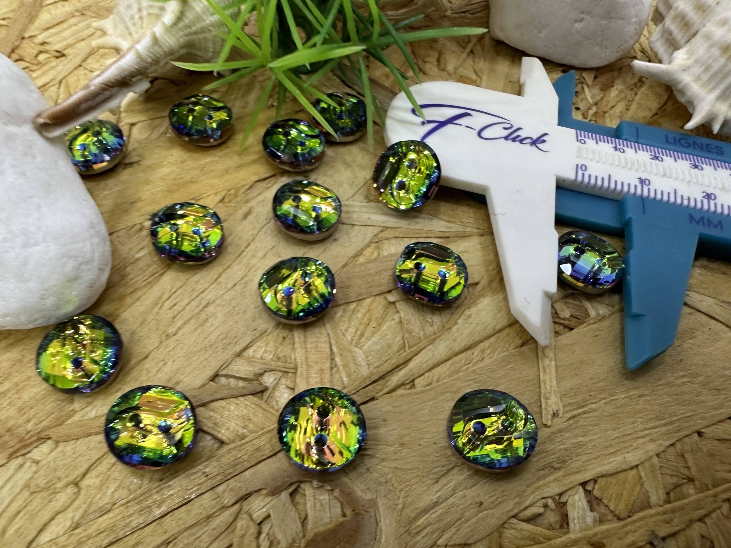 Luxury Green Rainbow Swarovski Button 10mm