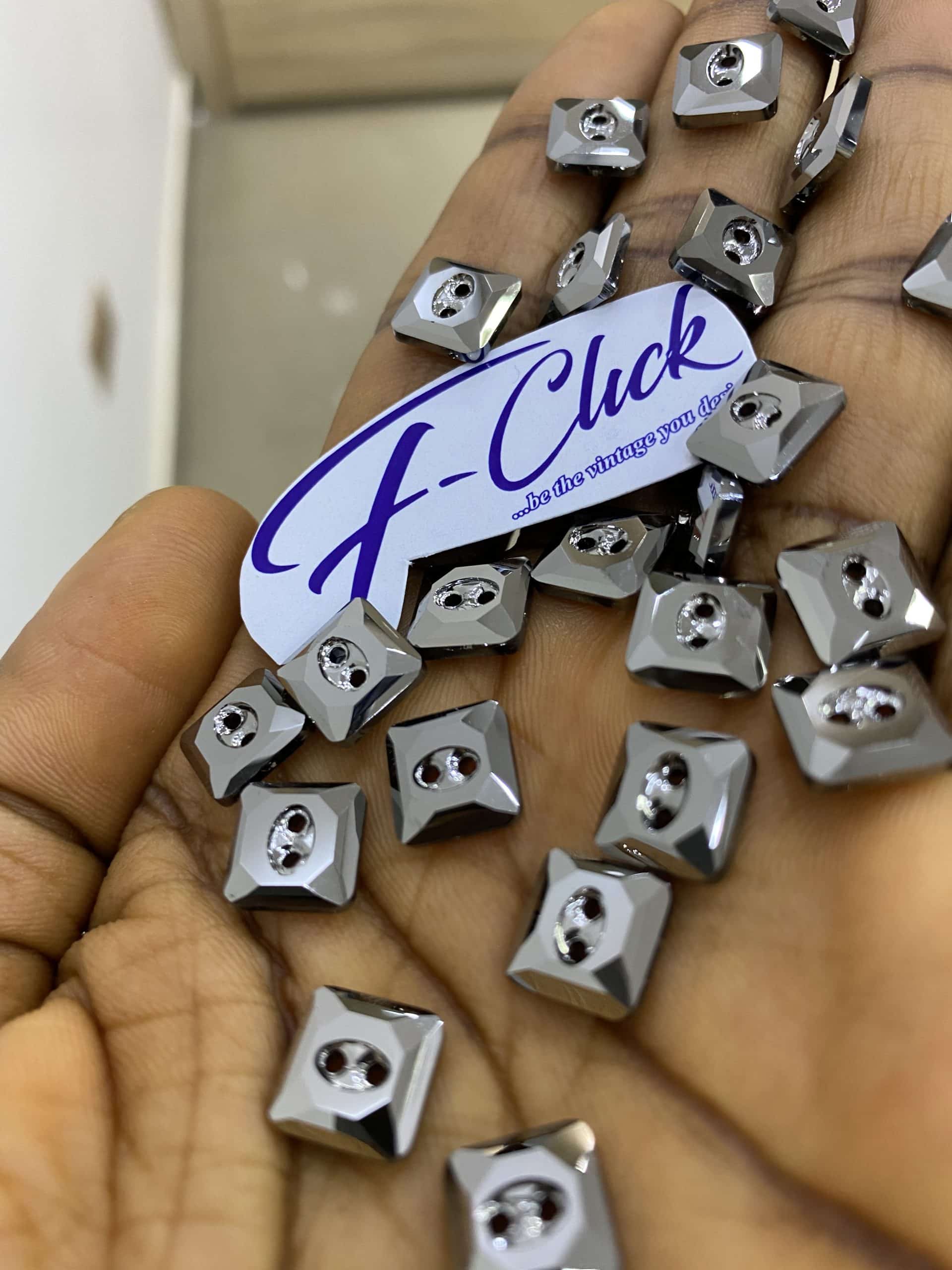 Luxury Dark Silver Swarovski Square Button 10mm